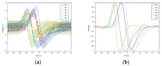 (a) Sensor output signals. (b) Filtered and normalized signals.