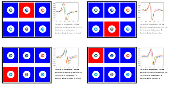 This example only involves the movement of the hand in four directions, so only four electrodes are used. In the system operation area, when waving the hand to the right and down, the interface reactions are shown in Figure 18.