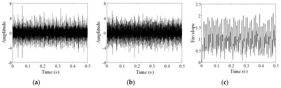 The above pre-processing operations can be illustrated with the simulated amplitude modulation signal shown as Figure 1a. To simulate the stochastic fault impulses, the modulating wave of simulated signal was set as multiple transient impulses with unequal amplitudes, attenuation rates and time intervals. As the impulse amplitude is not considered, the fault characteristic is mainly contained in the time intervals between adjacent impulses, which are denoted as . Conventionally, the variable is represented by the instantaneous frequency or the instantaneous phase . Therein, the instantaneous frequency does not need to be explicitly solved due to the correlation with as follows: