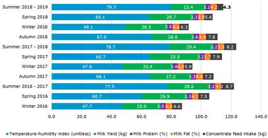 | Milk yield (kg day−1) | 0.0 | 65.4 | 28.1 | 0.0 | 60.2 | 30.7 | 0.0 | 61.2 | 28.8 | 0.0 | 52.1 | 21.2 |