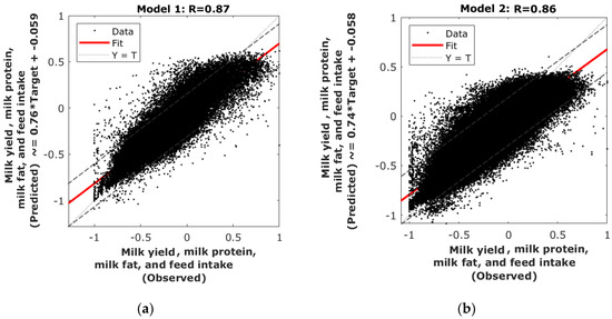 | Stage | Samples (Cows x Days) | Observations (Samples x Targets) | R | b | Performance (MSE) |