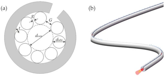 - Van Eijkelenborg, M.A.; Argyros, A.; Leon-Saval, S.G. Polycarbonate hollow-core microstructured optical fiber. Opt. Lett. 2008, 33, 2446–2448. [Google Scholar] [CrossRef]