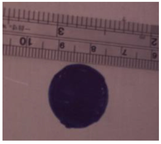 In the experiments of the inline inspection, a flat plate with a circular mark, as shown in Figure 9, was to be inspected. The center of the circular mark was the target point for inspection. The normal vector of the plate had a directional angle, , from the X axis and a tilting angle, , from the X-Y plane, as shown in Figure 10. The area of the circular mark was 301.69 mm2. The area of the circular mark would be measured during the object following and inline inspection to show the accuracy of the optical inspection. The relative movement between the camera and the moving plate would be investigated to show the stability of the inline inspection system.