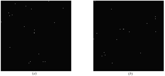 (2) We randomly discarded star points on the simulated star map to simulate the interference of “missing star”, and randomly generated star points on the simulated star map to simulate the interference of “false star”. After completing the above steps, we marked the “false star” points in the simulated map as “−1”.