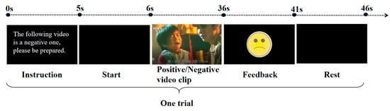 Furthermore, a total of 10 healthy volunteers (H1 to H10, aged 24–35, mean age 26.3 years, two females) from South China Normal University and South China University of Technology were recruited to attend the online BCI experiment. Written informed consent was obtained from all ten healthy subjects prior to the experiment. We used SynAmps2 amplifier (Compumedics, Neuroscan, Inc., Abbotsford, Victoria, Australia), and placed 32 electrodes on the subject’s head according to the international 10–20 system. “HEOR” and “HEOL”, and “VEOU” and “VEOL” were used to record an EOG. All electrodes were referenced to the right mastoid and grounded to the forehead. The EEG signals are amplified and digitized at a sampling rate of 250 Hz. Forty Chinese video clips were selected based on the positive and negative emotion models, with 20 clips for each emotion category (positive and negative). In the selection of videos, we first edited 140 comedy and tragedy scenes (clips) from famous Chinese movies or crosstalk shows, each of which was about 30 s. Then, ten volunteers (not the participants in the BCI experiment) were recruited to watch these clips and evaluate their emotions with a level (i.e., not at all, slightly, or extremely) and a keyword (i.e., positive or negative). Forty Chinese video clips scored by all volunteers as extremely positive or negative were selected for BCI online experiments. Notably, the continuous emotional dimension of Self-Assessment Manikin (SAM) used in our study may vary widely between subjects, and the meaning of scales is subjective [23].