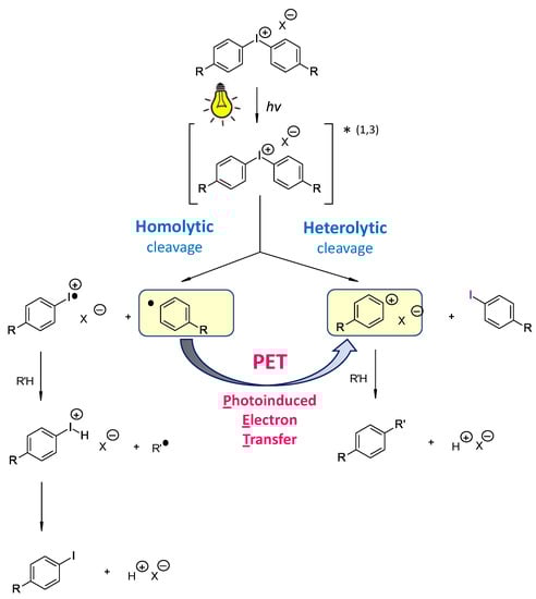 Photolysis of diphenyliodonium salt as a typical example of onium salt.