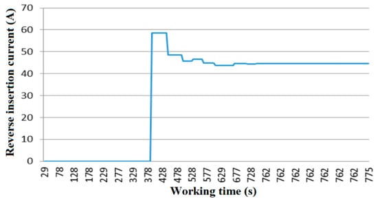 As shown in Figure 13, the reverse insertion current is maximal in the first reverse insertion at 378 s. Then, the reverse current decreases gradually with the depth of pile pulling and finally reaches a stable minimum, indicating the completion of pile pulling.