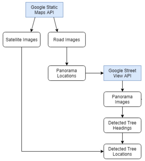 Recall that unlike most research in the published literature, our work focuses on the highly challenging task of tree detection in suburban environments in which clutter is ubiquitous and highly variable in appearance, scale, and type. Our idea is to use Google’s Street View to obtain relevant imagery. In particular, we employ Static Maps API to request a segmentation of a specified land area into road and non-road regions, as shown in Figure 9. Using this data allows us to fetch Street View images by virtually traversing and sampling different roads.
