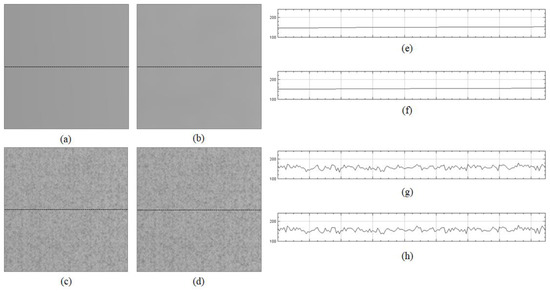 where denotes a flat-field distortion at the pixel caused by uneven illumination [17,22]; denotes dark-field distortion, which occurs if no light is incident [23]. Because the dark-field distortion is typically nearly uniform, varying by only a few intensity values [18], the proposed method assumes .