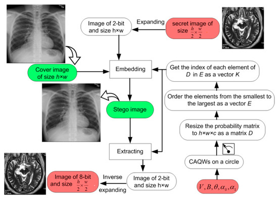 | El-Latif et al. [23] | A QIP data hiding mechanism suffusing greyscale images onto greyscale images based on the logistic chaotic map. | 2-bit/8-bit | Control parameters for running the logistic map as well the key matrix generated from the embedding process whose size is the same size as the secret message. |