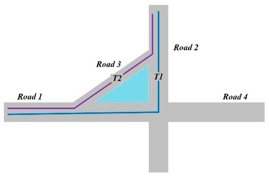 Overall, neither the method of calculating the distance between sequences nor the indirect method of expressing the trajectory in other forms can satisfy the spatial similarity measure of the location-based application in our research. Our key observation is that trajectories are considered similar if they pass through multiple identical locations/places. For example, suppose the triangle area in the Figure 1 is a square. T1 describes an object moving on road segment Road1 and then making a left turn to the road segment Road2. T2 describes an object moving on road segment Road1, making a left turn to the road segment Road3 and then moving on the Road2 (when the current road is congested, the temporary diversion is selected). Trajectories T1 and T2 are similar in location-based studies because they passed through the same locations/places. However, if we consider the distance between sequences, shape or the road information of the trajectory, their similarity is rather small. In this case, it is unnecessary to know the characteristics of the trajectory in detail, although there may be some interesting issues in those trajectories. Hence, the spatial similarity measurement of trajectory data mainly focuses on the common locations or places, and these locations should be the meaningful areas (e.g., a square, commercial streets, office areas), not just points with latitude and longitude. We contend that the location-based similarity analysis is very meaningful, especially if we have some particularly interesting locations for analysis (e.g., travel preferences analysis).