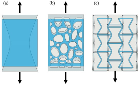 The three types of Poisson’s ratio: (a) positive, (b) zero, and (c) negative [].
