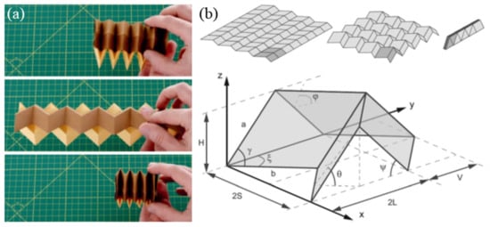 - Schenk, M.; Guest, S.D. Geometry of miura-folded metamaterials. Proc. Natl. Acad. Sci. USA 2013, 110, 3276–3281. [Google Scholar] [CrossRef]