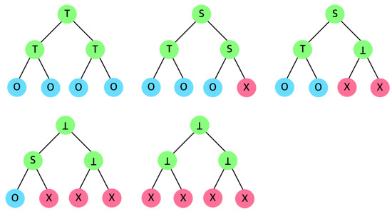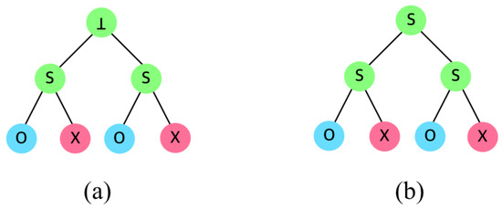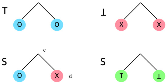 For both SD and CSD, the examples in Figure 3 are valid. However, as in Figure 4, the CSD is different from SD in case when two S nodes are combined; the SD let the parent of two S be a type ⊥, while CSD let it be another S. In the SD, a set can be fixed only if its descendants are all ⊤ or ⊥. Therefore, two S nodes cannot be merged into a single set; the parent node becomes ⊥ since two S type nodes are determined as individual subsets in SD. However, in CSD, the parent node becomes another S by merging two S nodes, without generating two subsets.