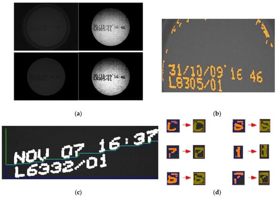 - Rodríguez-Rodríguez, J.C.; Quesada-Arencibia, A.; Moreno-Díaz, R., Jr.; García, C.R. A character segmentation proposal for high-speed visual monitoring of expiration codes on beverage cans. Sensors 2016, 16, 527. [Google Scholar] [CrossRef] [PubMed]