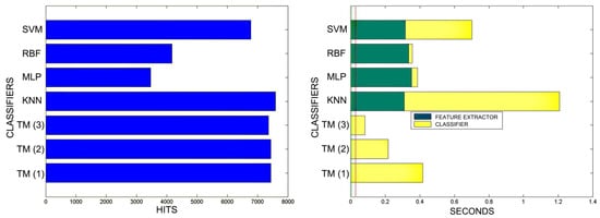 - For each subset (in this case one) and for each classifier: For each subset (in this case one) and for each classifier: Step 1; The features of each template are extracted from the subset and matched to the classifier input. Step 2; The classifier is trained with the subset. Step 3; The features of each template are extracted from the classification set and adapted to the classifier input. Step 4; The complete classification set is classified with the classifier. Step 5; Iteration statistics (time spent in each phase, hits, misses) are recorded. Step 6; The average is calculated with the subset statistics.