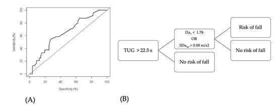 - Shumway-Cook, A.; Brauer, S.; Woollacott, M. Predicting the Probability for Falls in Community-Dwelling Older Adults Using the Timed Up & Go Test. Phys. Ther. 2000, 80, 896–903. [Google Scholar]