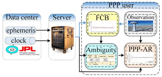 The flow chart of Precise Point Positioning can be described as shown in Figure 1. The PPP with float resolution needs a long convergence time. In order to converge fast, adding the GNSS system is a feasible method, and another method is ambiguity resolution which does not need to add a data source. However, conventional ambiguity resolution needs FCB estimated by the network. When the communication network is poor, there is no assistance in real-time network corrections.