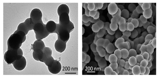 A graphical description of the system for the exposure can be found in Figure 3. The system of exposure is based on the use of a polydisperse aerosol generator with a constant particle flow connected to a measurement box where both the antenna and the environment were controlled. The tests were conducted by generating submicron aerosols (through a generation system which can manage particle sizes from 0.01 to 2.00 μm) from a liquid suspension of black carbon [38,39] particles with a diameter of 0.2 μm (see Figure 4) into PAO (polyalphaolefin) oil. To produce a controlled environment for the exposure to the PM particles, the antenna has been introduced into a mechanically isolated cardboard box, with a size of 40 cm × 30 cm × 30 cm. A solution made with 1 g of black carbon particles in 60 mL of PAO oil has been used as input of the system (see Figure 3C) in order to create the gaseous suspension of pollutants. In addition, the maximum output air flow of 4.5 L/min, led by adjusting the maximum nozzle pressure (1032 hPa) of the polydisperse aerosol generator, has been selected. In these conditions, the polydisperse aerosol generator produces particle concentrations from 102 part/cm3 to 107 part/cm3 [40]. To prevent experimental artifacts and guarantee the reproducibility of the results, the vector network analyzer (Figure 3E) has been used and calibrated.