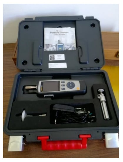 At the same time, a particle counter PCE-PCO1 (see Figure 5) from PCE instruments has been used to characterize the particle distribution size generated by the system.