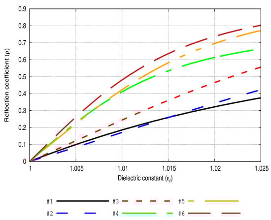 can be obtained as the definition of the reflection coefficient of an antenna in terms of the VSWR. If the antenna is matched to a specific frequency and relative permittivity , i.e., , the reflection coefficient defined in Equation (2) is equal to zero.