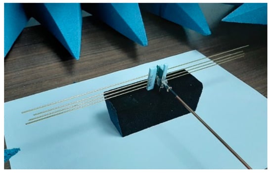Consequently, the approach from Yagi–Uda-like antennas seems to be a good alternative to develop this research due to their low-cost construction requirements. In addition, this type of antenna represents a robust solution for easy matching to a feeding network [26]. Therefore, this proposal consists of a linear array of dipoles [27], one of which—the so-called active element—is fed by a power source. The rest of the elements act as parasites and are excited due to near-field coupling effects induced by the driven element. Otherwise, Yagi–Uda antennas can be adopted as an advantageous alternative in front of the existing current methods because they are portable, compact, and unaffected by movement. Due to this fact, a sensor like this could be easily mounted on drones or airplanes to mapping the evolution and the dissemination of PM clouds quite easily.