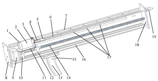 Figure 4. The DC servomotor drives the microdrill to rotate, and the stepper motor drives the drill to move forward or backward. In the discrete dual motor drive system, the rotation speed of the microdrill is independently controlled by the DC servomotor, which makes the control effect of constant speed better. The DC servomotor is the RE35 type from Maxon Group, Switzerland; it has a rated voltage of 24 V, a maximum rotating speed of 12,000 rpm, a rated current of 3.62 A, a rated torque of 0.101 N·m, and a maximum stalled current of 41.1 A. This motor is easy to control and it has an excellent linear speed regulation. The DC servomotor is equipped with an HEDL-5540 type 1024-line incremental photoelectric rotary encoder at the tail and an all-steel planetary gear reducer at the head, with a reduction ratio of 16:1. The motor axis is connected with the microdrill through a coupling and drill bit clamp to drive the high-speed rotation of the microdrill in the tree. The DC servomotor is fixed on the sliding base through a motor base; the stepper motor connects and drives the microdrill rotation, making the sliding base move forward and backward at a precise and constant speed, thereby controlling the piercing and retrieving of the microdrill in the tree horizontally. A two-phase four-wire stepper motor is used; it has a diameter of 57 mm, a stepping angle of 1.8°, a holding torque of 1.4 N·m, a rated current of 2.8 A, and a moment of inertia of 245 g·cm