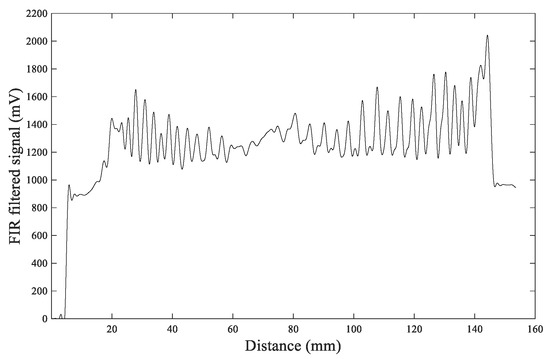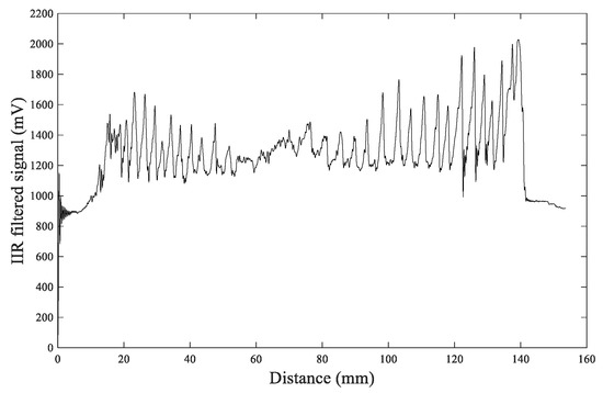 Figure 16, it can be observed that the FIR filtering result is more clear and smooth and the values at the peaks and valleys are more distinct, which makes it easier to distinguish the annual rings. The IIR filtering result shows that the peaks and valleys have more dithering signals, making it challenging to identify the number of peaks, thereby resulting in errors when distinguishing annual rings. So FIR filtering is a more effective filtering algorithm.