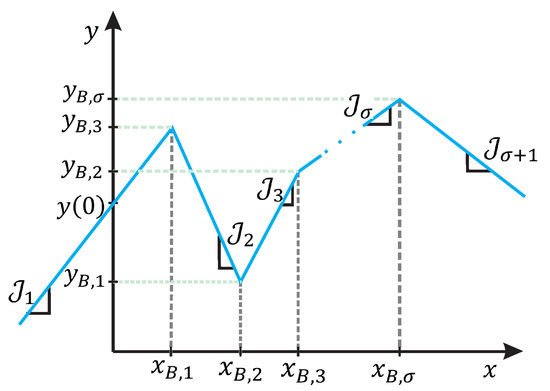 where is an implicit representation of Equation (24). It can notice, that depends on x values. The breakpoints can take any value in the y-axis but, for x-axis, the values must be incremental such that .