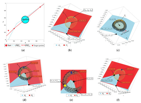 - The system of equations is established from , , and the sphere . DST has been formulated to track the curve of intersection between and using the SA algorithm.where , n is the number of DST steps; is the radius, and is the center of the sphere for every k-th step of the DST.