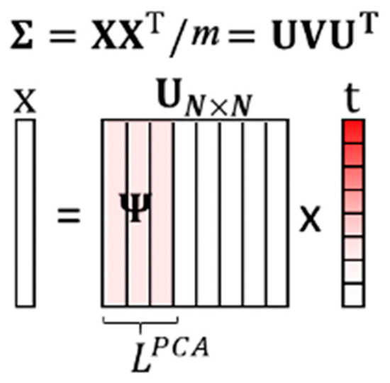 A data vector can be re-expressed as , where is the transformed vector. The PCA-based dictionary is built by the first columns of :