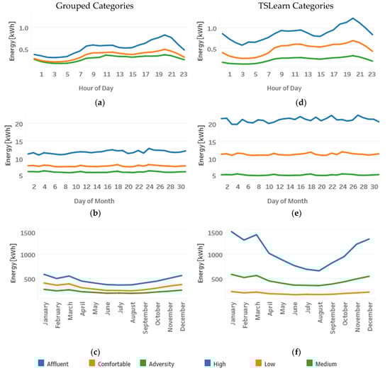 Since our study was exploratory, we built a data warehouse with different time granularities in addition to the original raw data time-base (30 min): half-hourly, hourly, daily, weekly, and monthly. We also created data frames with information corresponding to the ACORN groups and the individual characteristics of the clients.