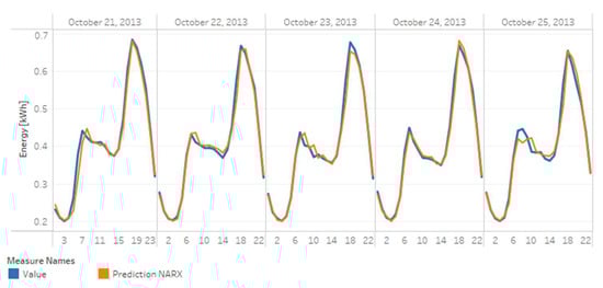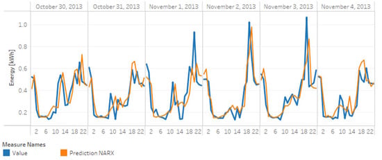 The forecasting task presents one of the main challenges in the analysis of AMI data. In this case study, the implemented algorithm presented significantly low error indicators, even in the case of individual meters. The algorithms implemented in this case study are not mandatory. Nevertheless, the results show the potential of combining an autoregressive algorithm (NARX) with an ensemble of learning entities (Random Forest) and libraries specialized in time series data (fireTS) as part of the data life cycle for this type of application.