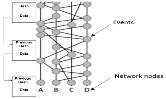 - Baird, L. The Swirlds Hashgraph Consensus Algorithm: Fair, Fast, Byzantine Fault Tolerance. Available online: https://www.swirlds.com/downloads/SWIRLDS-TR-2016-01.pdf (accessed on 15 April 2020).
