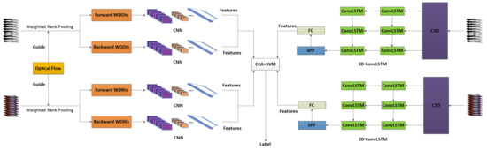 15] is utilized to extract long-term spatiotemporal features. Both WDI and 3D ConvLSTM are applied to RGB video and depth maps to extract features. These features are fused together using Canonical Correlation Analysis (CCA) [