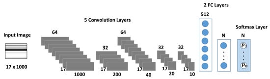 Figure 4 depicts the CNN architecture used as a multiclass classifier for each condition monitoring target. The network’s design focuses on capturing the temporal correlation of the sensor signals, which are one-dimensional time series. A similar architecture was implemented in [