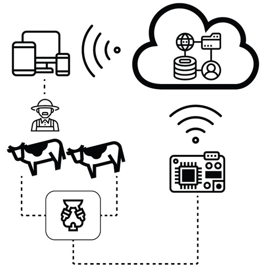Technologies like radio frequency identification could be convenient, using radio tags to identify each milking system onto a wireless network. IoT integration could bring to the system the potential to increase productivity, as well as the reach of new markets, self-organized systems, and auto-collect data from each node of the net [47]. Nowadays, IoT brings data security and cloud-computing applications enabling the creation of smart systems in real-time, supports a large number of users, and the system still can be operated in both wired and wireless environments [47].