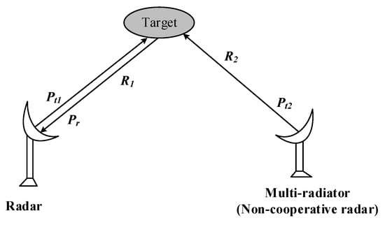 where , , , and are radar radiated power, radar gain, radar wavelength and distance between radar and target and the monostatic RCS. , , , and are the multi-radiator radiated power, multi-radiator gain, multi-radiator wavelength, distance between multi-radiator and target and bistatic RCS, respectively. The incoherent external disturbance can be obtained by employing (15) and (16) as