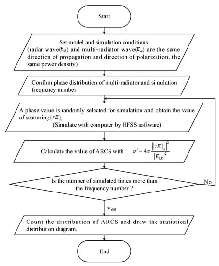 In the complex EM environment, the phase randomness of the multi-radiator has a huge influence on the scattering properties, especially in the calculation of RCS. To investigate such a phenomenon, the statistical electromagnetics theory is employed. The phase of the multi-radiator is considered as a stochastic variable. By this means, the ARCS and the statistic characteristics can be analyzed. Figure 11 shows the diagram of the processing during the analysis of the statistical characteristics.