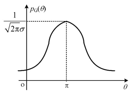 The Gaussian distribution of with the average value of and standard deviation of is considered. The probability density can be given as