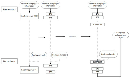 We complete GAN training based on KL divergence [36] and get the final signal enhancement model, the reconstructed signal can be steadily enhanced by adding layers from low to high.