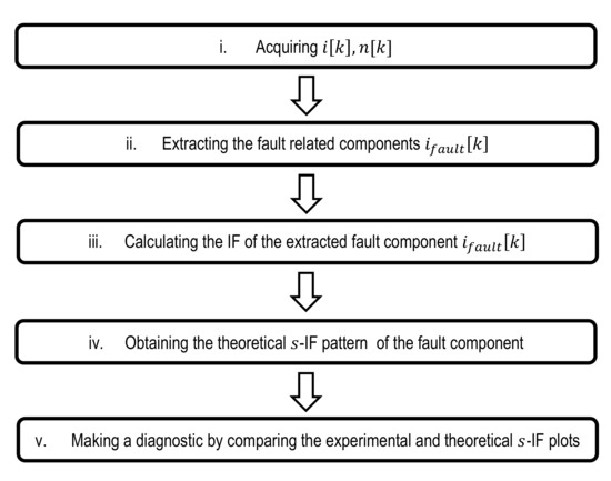 This work addresses both problems, and proposes a new methodology for the diagnosis of three types of usual faults in induction machines, which is based on tracking the IF of the fault related components of the stator current during the functioning of IMs in transient regime. Schematically, this methodology involves the following steps, summarized in the block diagram of Figure 1: