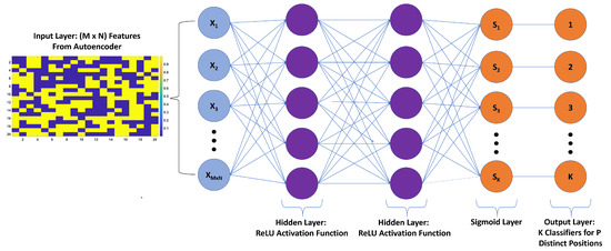 Typically, in classification problems, the output labels are one hot encoded, through which, categorical data, in this case, the load positions, are converted into numerical data. The output of the last layer of the neural network, which is now a one hot encoded vector is passed through a sigmoid function. The Sigmoid function changes the arbitrary output scores to a range of probabilities that range between zero and one. Sigmoid, instead of other activation functions, was chosen to be in the output layer. This is because the load localization in this work is a multi label classification problem where more than one correct label exists in the output. Therefore, the output labels are not mutually exclusive i.e., the output labels are independent. The closeness between the output of the sigmoid function and the true labels (T) is defined as loss or cost function. The cost function of the classification () is defined as the average of Cross Entropy Error Function (CEEF) over a batch of multiple samples of size N and labels of size K, as follows: