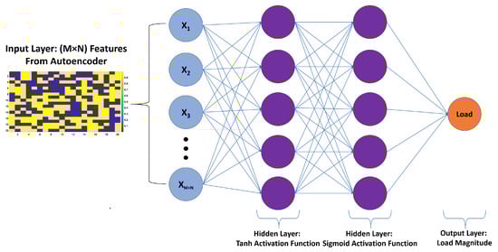The proposed artificial neural networks (ANN) for estimation of loads with two hidden layers of tanh and sigmoid activation functions, respectively.