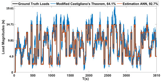 From these results, it is seen that the load can be successfully localized using this method. Besides its obvious usage for load localization, this information is vital for the correct estimation of load magnitudes based on the proposed methodology for load estimation based on Castigliano’s theorem as formulated in the following subsection.