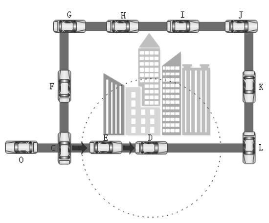 As an emerging field of MANETs (mobile ad-hoc networks), VANETs (vehicle ad-hoc networks) are a form of wireless communication network, with the purpose of improving driver safety and passenger comfort. A VANET is a wireless network in which nodes are both network participants and collaborators through the wireless communication equipment [4] installed on each node. Nodes communicate through other intermediate nodes within their transmission range to form a network. A VANET is a self-organizing network and does not depend on any fixed network infrastructure. Although some fixed nodes act as roadside units, it is convenient to provide geographical location data for the vehicle network or access to the Internet [5,6]. The high-speed dynamics of the nodes are the main characteristics of VANETs, which also leads to rapid changes in the network topology [7]. In order to provide reliable services, a VANET needs to solve many challenges. Establishing reliable routing is one of the main challenges, so more research is needed to promote the development of VANETs.
