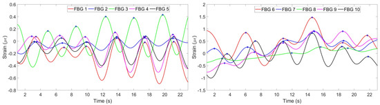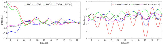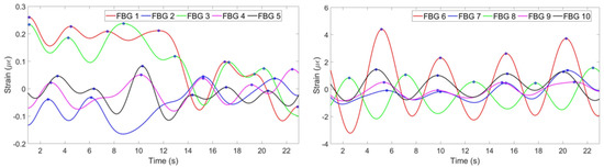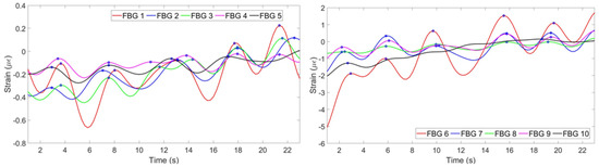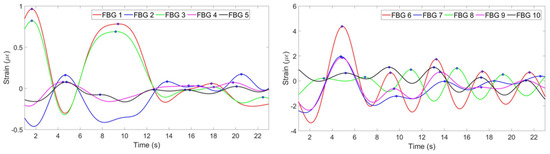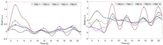 Figure 6 shows the strain change per time detected by each FBG.