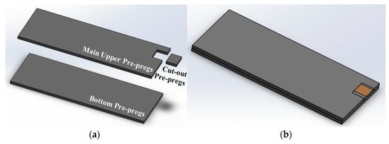 Schematics of (a) ply-cutting plan, (b) pre-pregs assembly model.