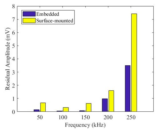 Residual amplitude comparison between embedded and surface-mounted signals.