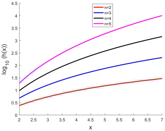 The first derivative of h at a point x is given in (26). The second derivative of h with respect to x is given by